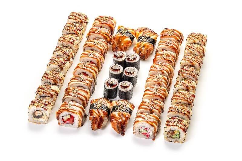 Каліфорнія з вугрем, Філадельфія з вугрем, Макі ролл з вугрем, Унагі Чіз, Золотий Дракон, Суші з вугрем