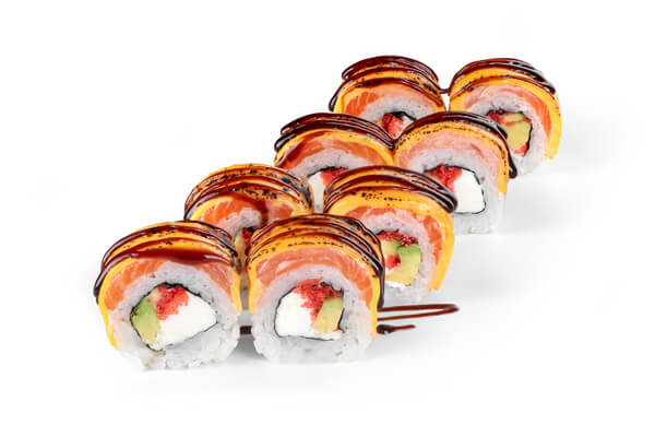 Філадельфія з лососем, Філадельфія сівід, Тигровий та Зелений Дракони, Каліфорнія з лососем, Канадський та Біг ролл, Унагі Чіз, Білий Дракон, Сушки з тунцем, вугрем та лососем